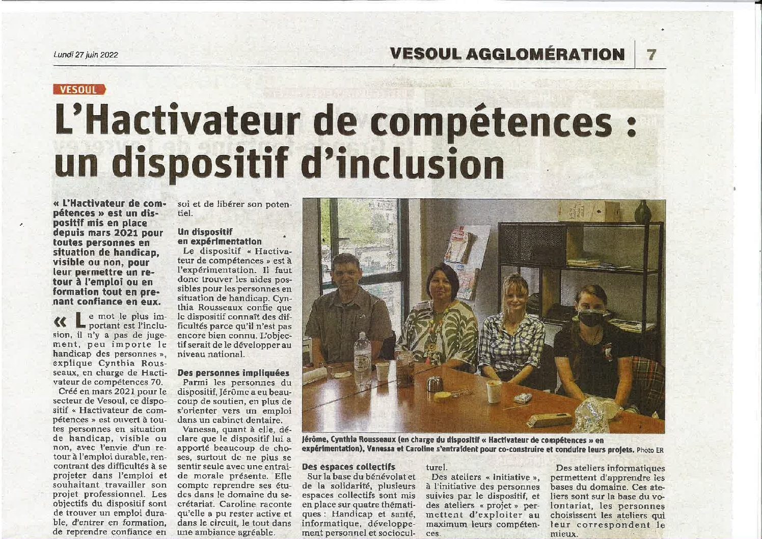 L’Hactivateur de compétences, porté par CAP EMPLOI, est mis en place depuis mars 2021. Il permet un retour à l’emploi ou en formation aux personnes en situation de handicap ou non et leur permet de retrouver confiance en eux.