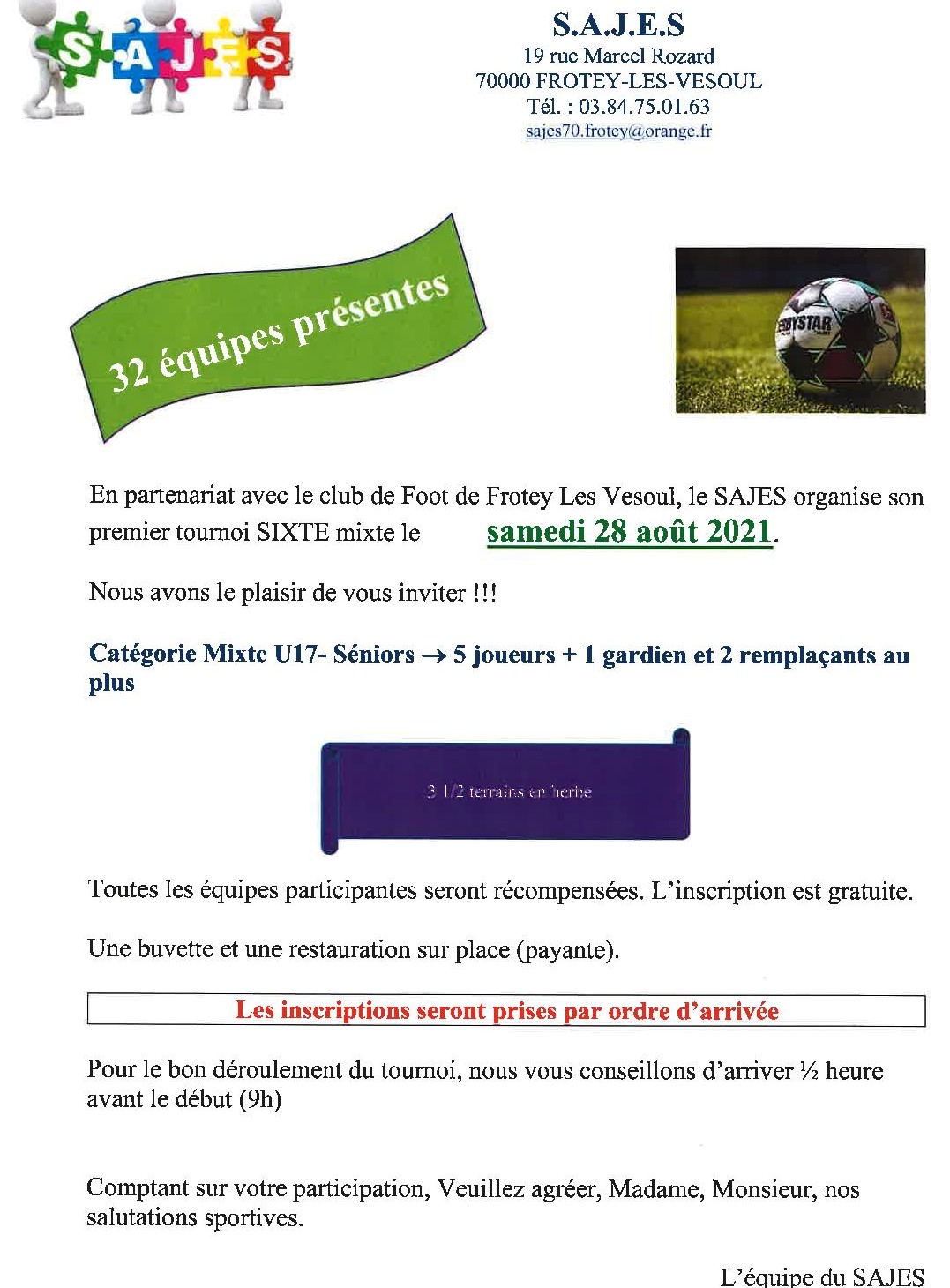 En partenariat avec le club de FROTEY LES VESOUL, le organise un tournoi de sixte :